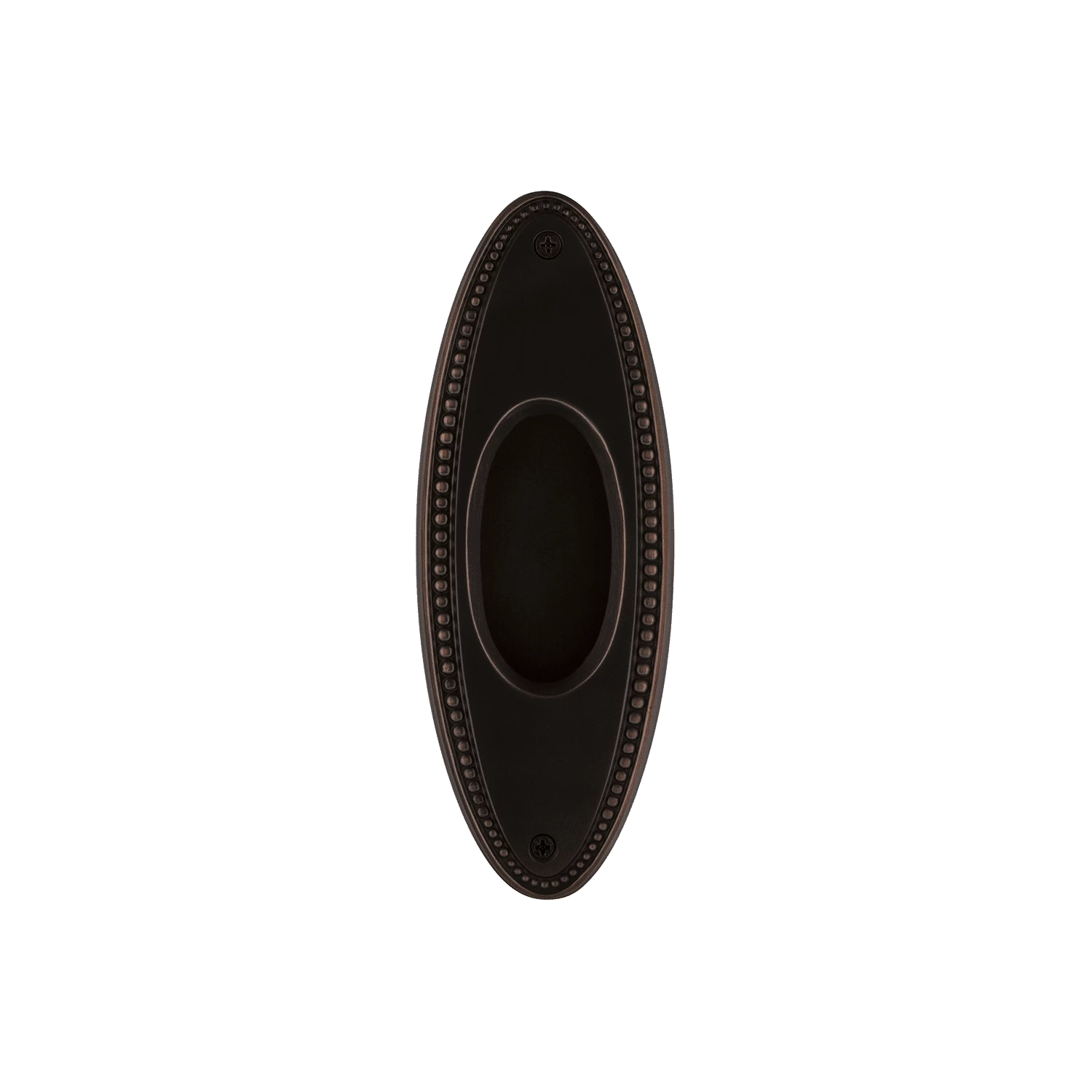 The solid brass Beaded Flush Pull with its decorative oval shape is fashionable, yet functional on pocket doors, sliding doors, cabinet doors or any door where a flush with the door face pull is needed. With its beaded design and oval shape, it’s a beautiful yet classic piece for your home.