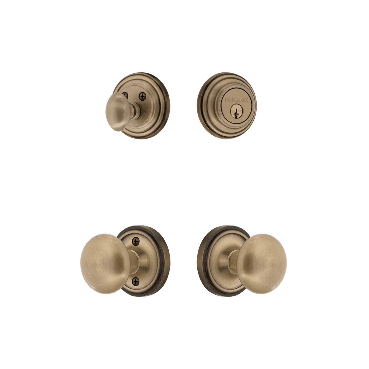 Be the first to review “Classic Rosette Entry Set With New York Knob In Antique Brass” Cancel reply