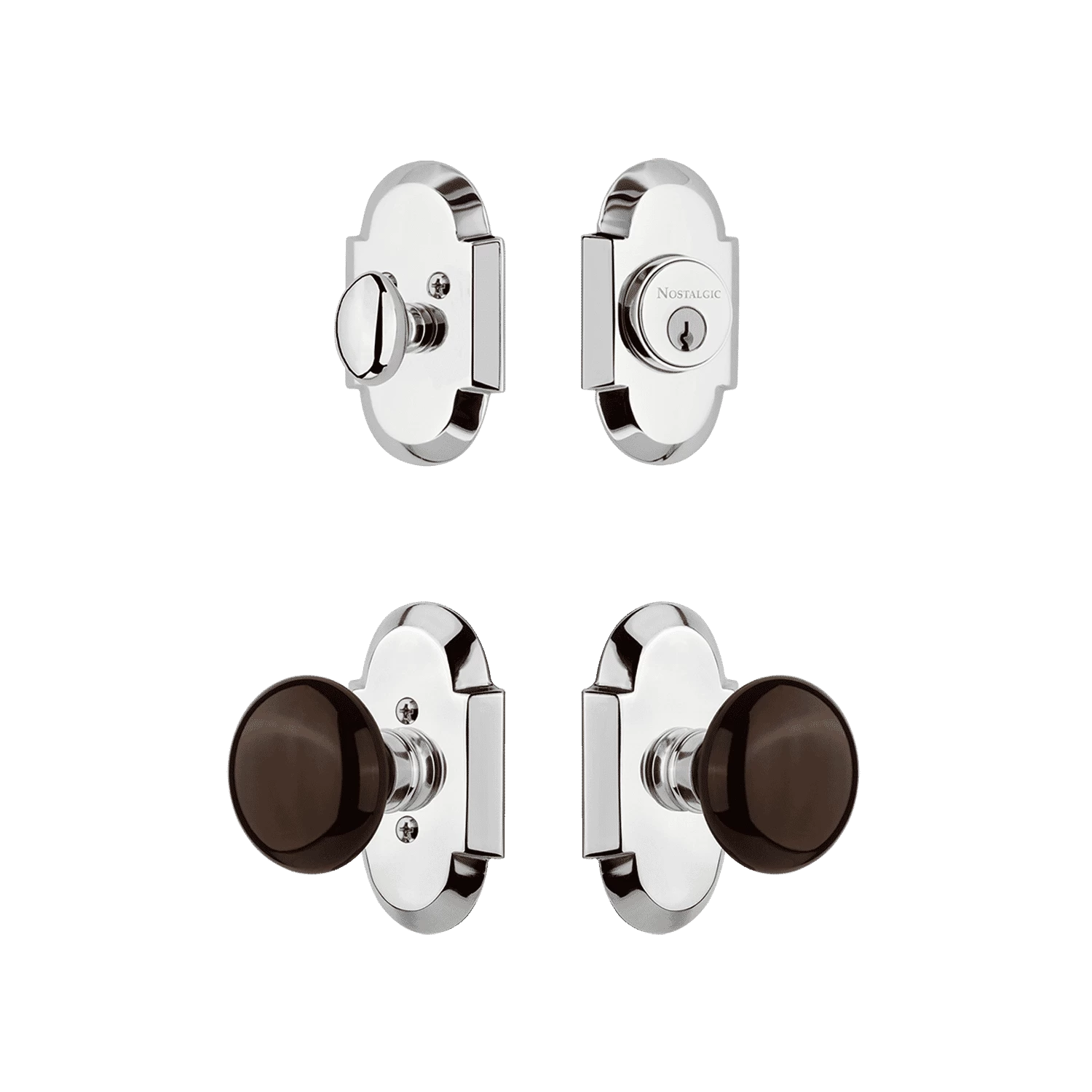 The Cottage Entry Set combines principled design with a hardy sensibility, creating a happy medium for any modern or traditional home. The rich, kiln-fired Brown Porcelain Knob is a nice complement to the warm, earthen hues in your home. The single-cylinder deadbolt features top-quality internal components for smooth, long-lasting operation. All Nostalgic Warehouse products are made from solid forged brass for durability and beauty.