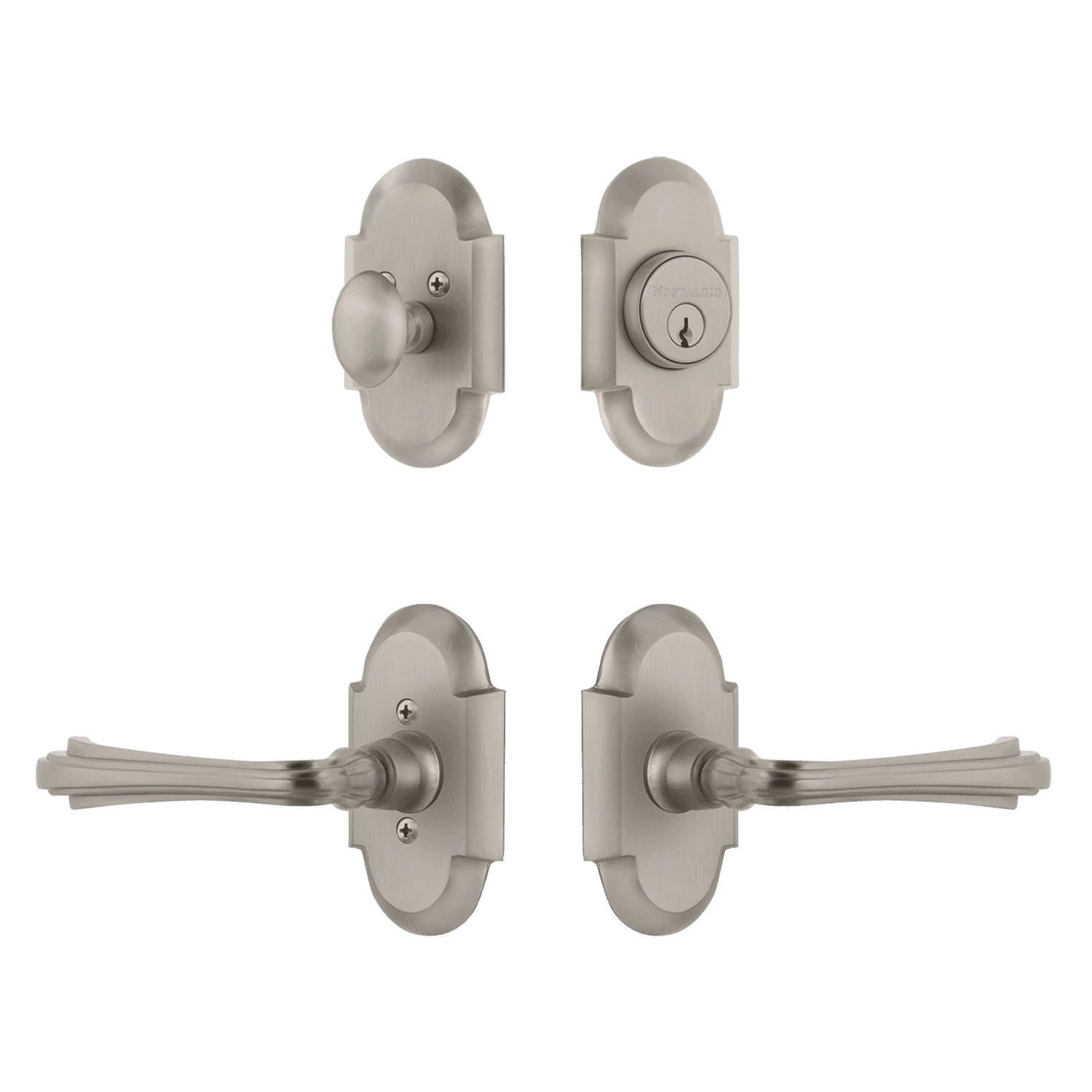 Be the first to review “Cottage Entry Set With Fleur Lever In Satin Nickel” Cancel reply