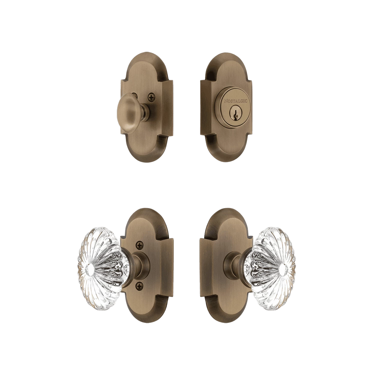 The Cottage Entry Set combines principled design with a hardy sensibility, creating a happy medium for any modern or traditional home. Add remarkable elegance with the Oval Fluted Crystal knob and its 24 individual hand-ground facets. The single-cylinder deadbolt features top-quality internal components for smooth, long-lasting operation. All Nostalgic Warehouse products are made from solid forged brass for durability and beauty.