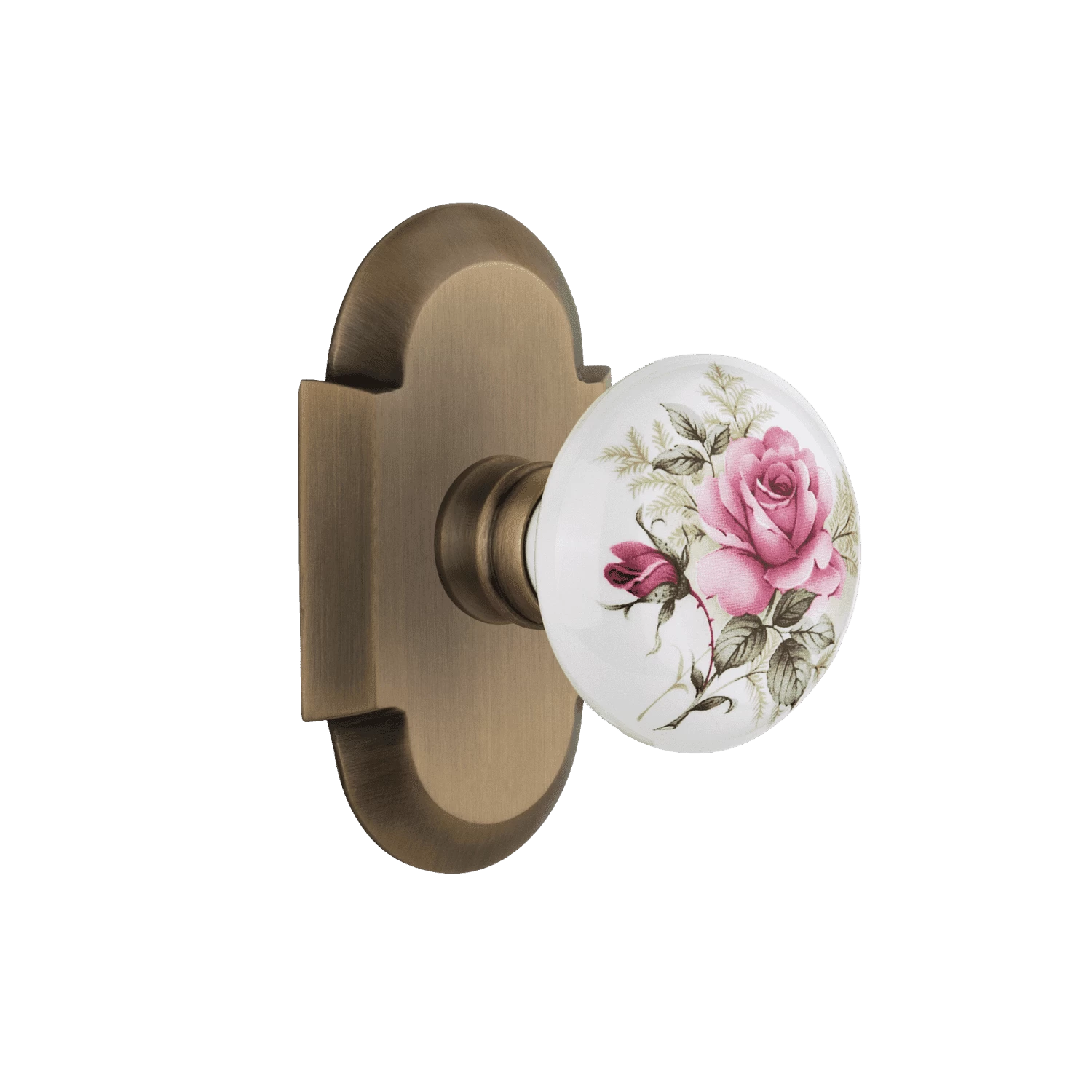 Be the first to review “Cottage Short Plate With White Rose Porcelain Knob In Antique Brass” Cancel reply