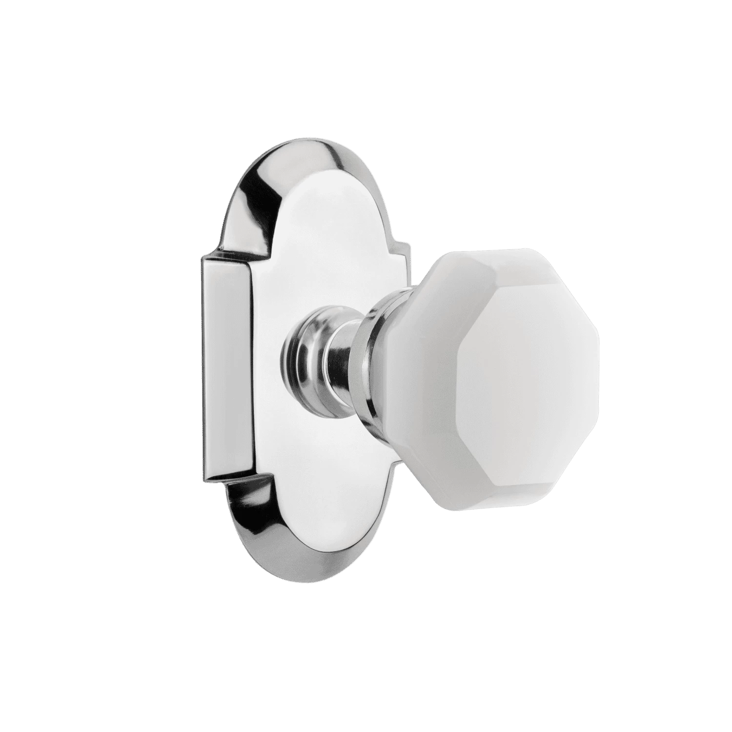 Be the first to review “Cottage Short Plate With White Waldorf Knob In Bright Chrome” Cancel reply