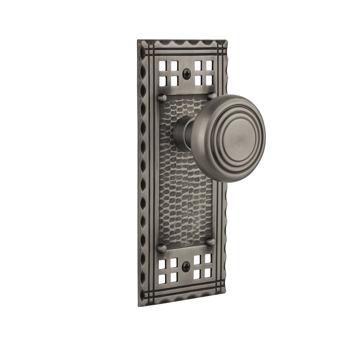 Inspired by the American Arts & Crafts movement of the early 1900s, the rugged design and hand-hammered details of the Craftsman Long Plate emphasizes handwork over mass production. Pair this with our Deco door knob to lend classic lines and a touch of exuberance to your lifestyle.