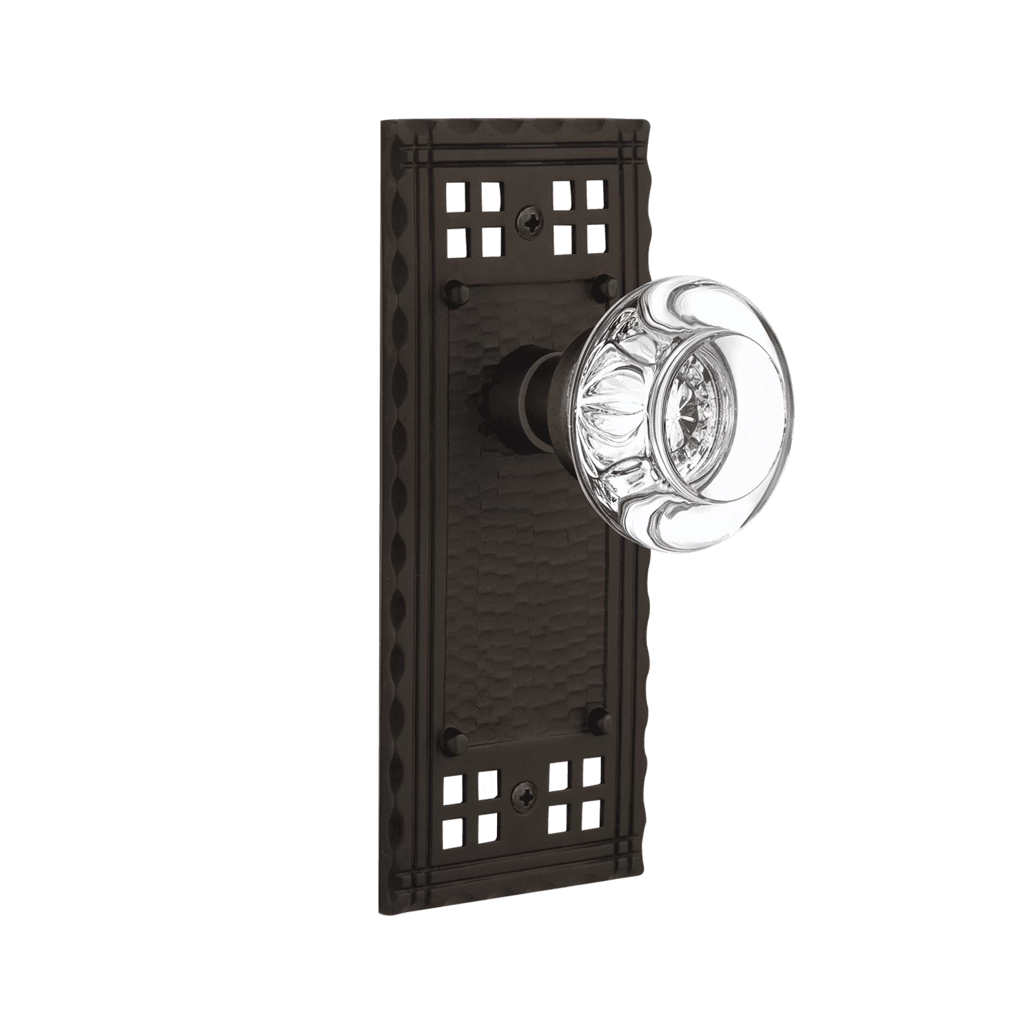 Inspired by the American Arts & Crafts movement of the early 1900s, the rugged design and hand-hammered details of the Craftsman Long Plate emphasizes handwork over mass production. Adding our Round Clear Crystal door knob, which features a circular shape that magnifies the beautiful facets underneath, only serves to bring the past alive.