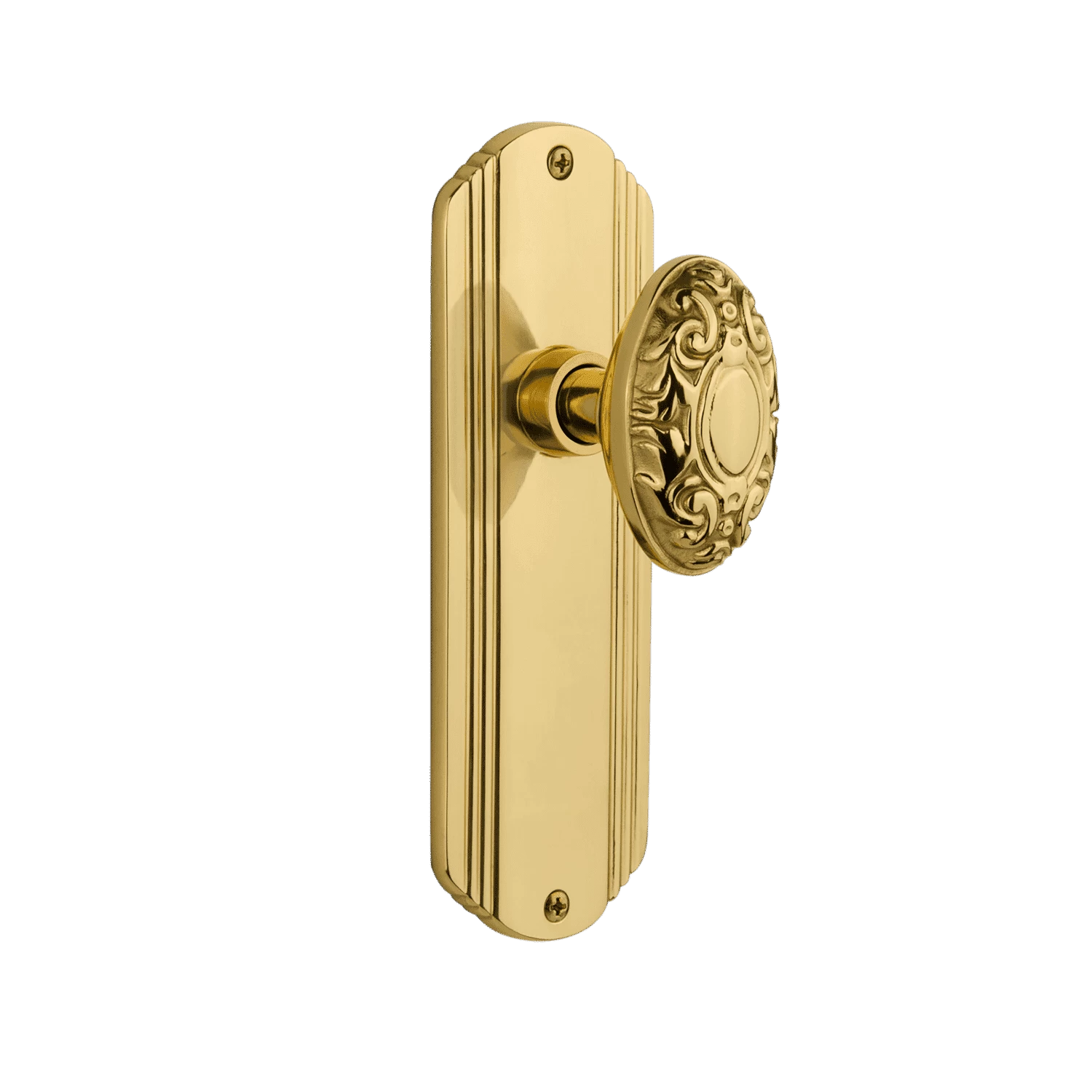 The Deco Plate brings to mind old Hollywood, jazz, and The Great Gatsby, all of which inspire a modern twist on great classics from the past. Combine this with our Victorian door knob for a extraordinary look fit for royalty.