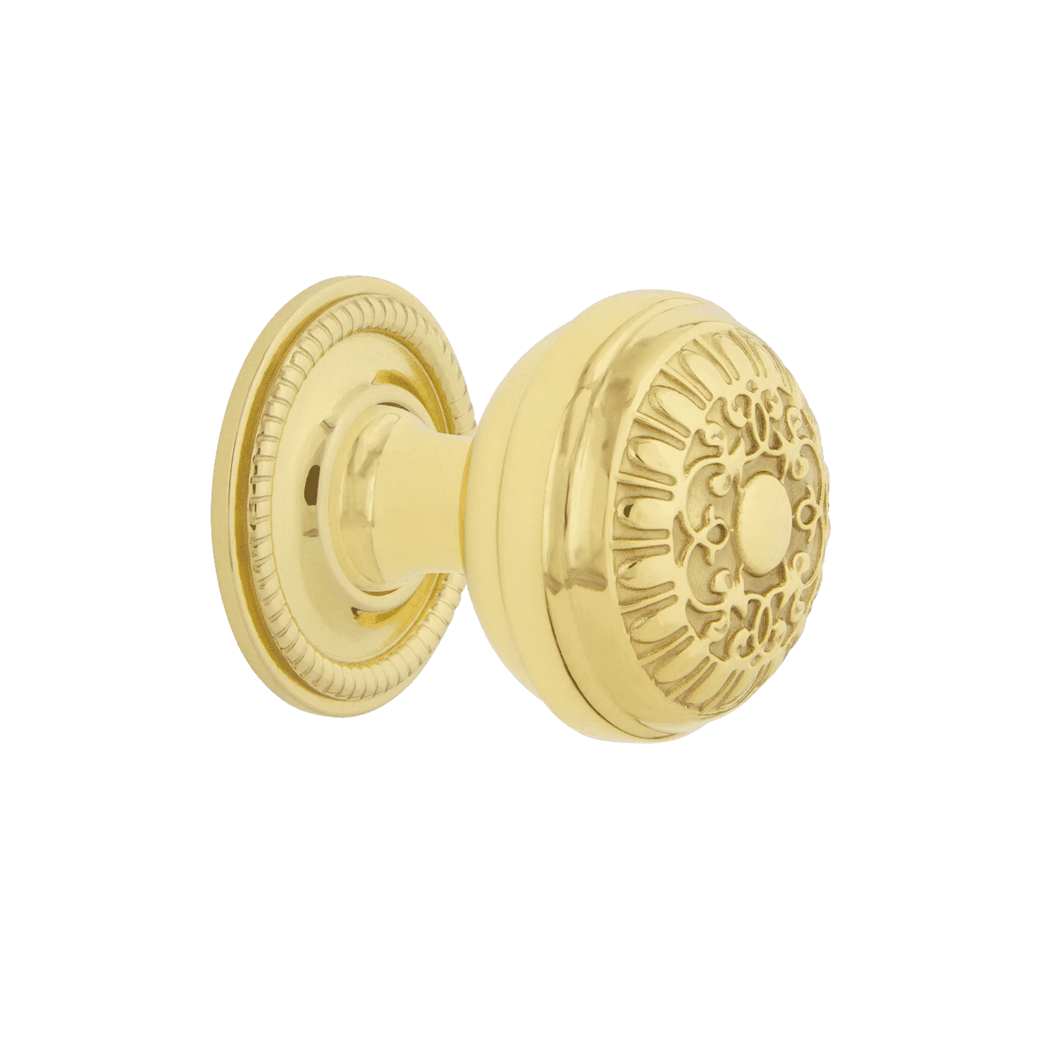 The grand floral pattern of the Egg & Dart cabinet knob, paired with the intricate details of the Rope cabinet rosette adds an elegant finish to cabinet and drawers.