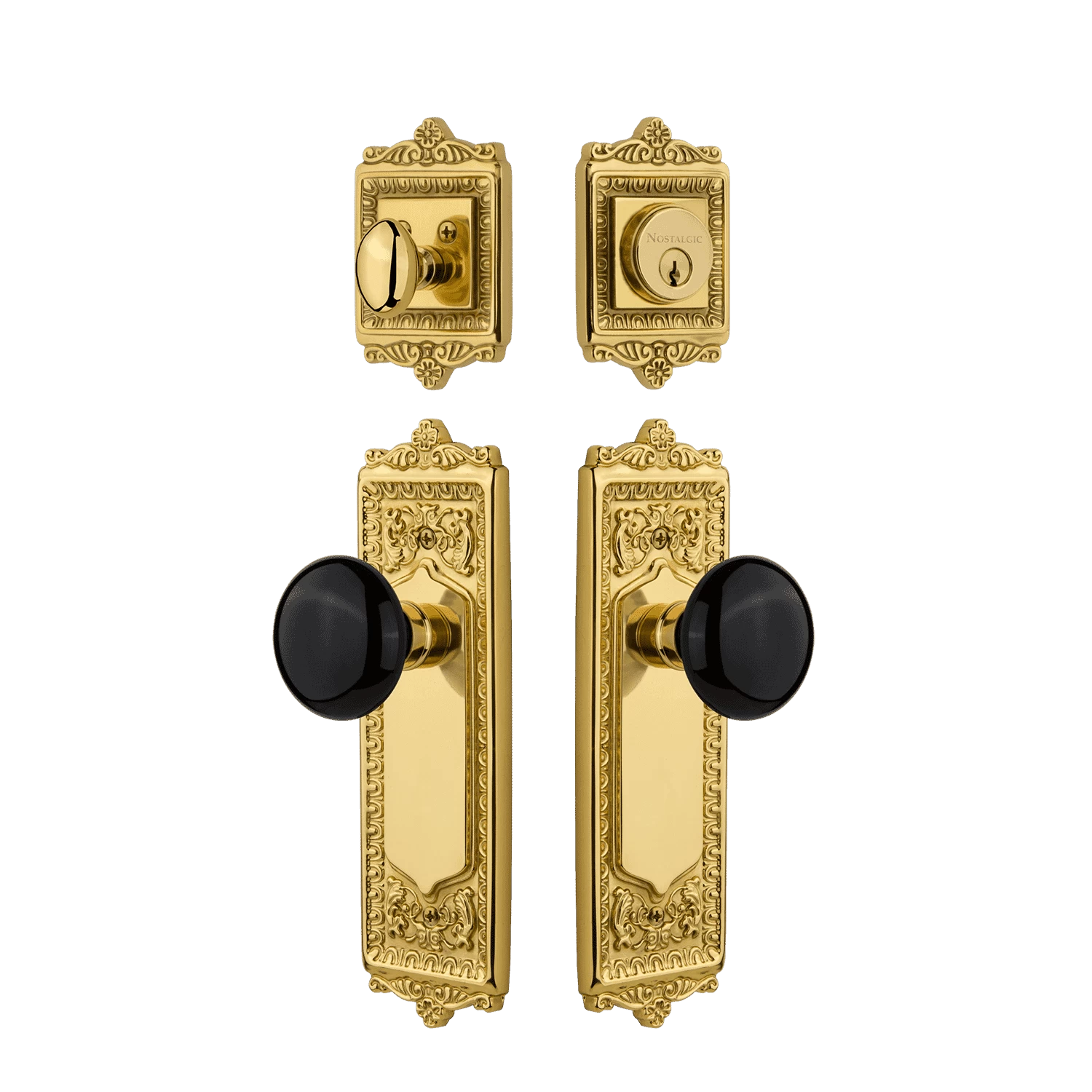 With its distinctive repeating border and pretty floral details, the Egg & Dart Entry Set resonates grand style. Add the timeless, kiln-fired Black Porcelain Knob to create a sophisticated, yet classic look. The single-cylinder deadbolt features top-quality internal components for smooth, long-lasting operation. All Nostalgic Warehouse products are made from solid forged brass for durability and beauty.