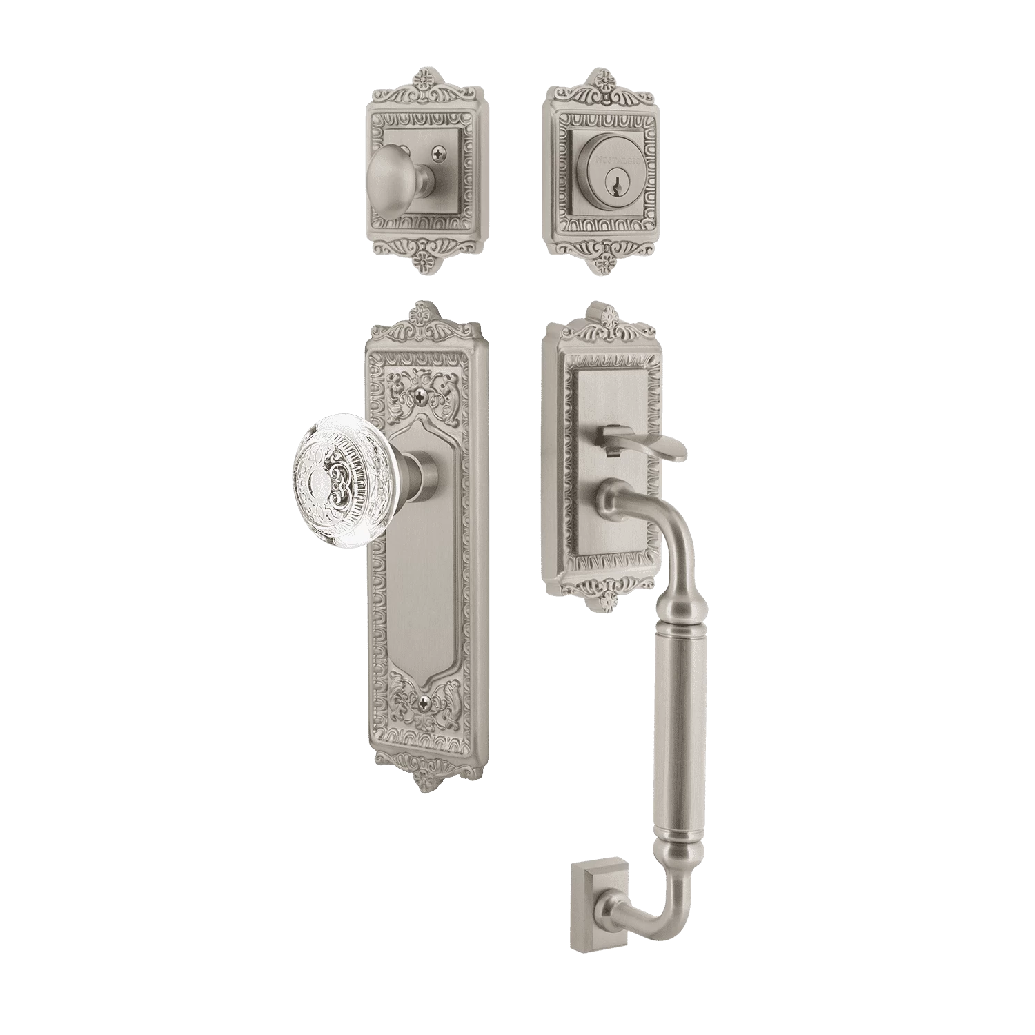 Be the first to review “Egg & Dart Handleset With C-Grip And Egg & Dart Long Plate With Crystal Egg & Dart Knob In Satin Nickel” Cancel reply