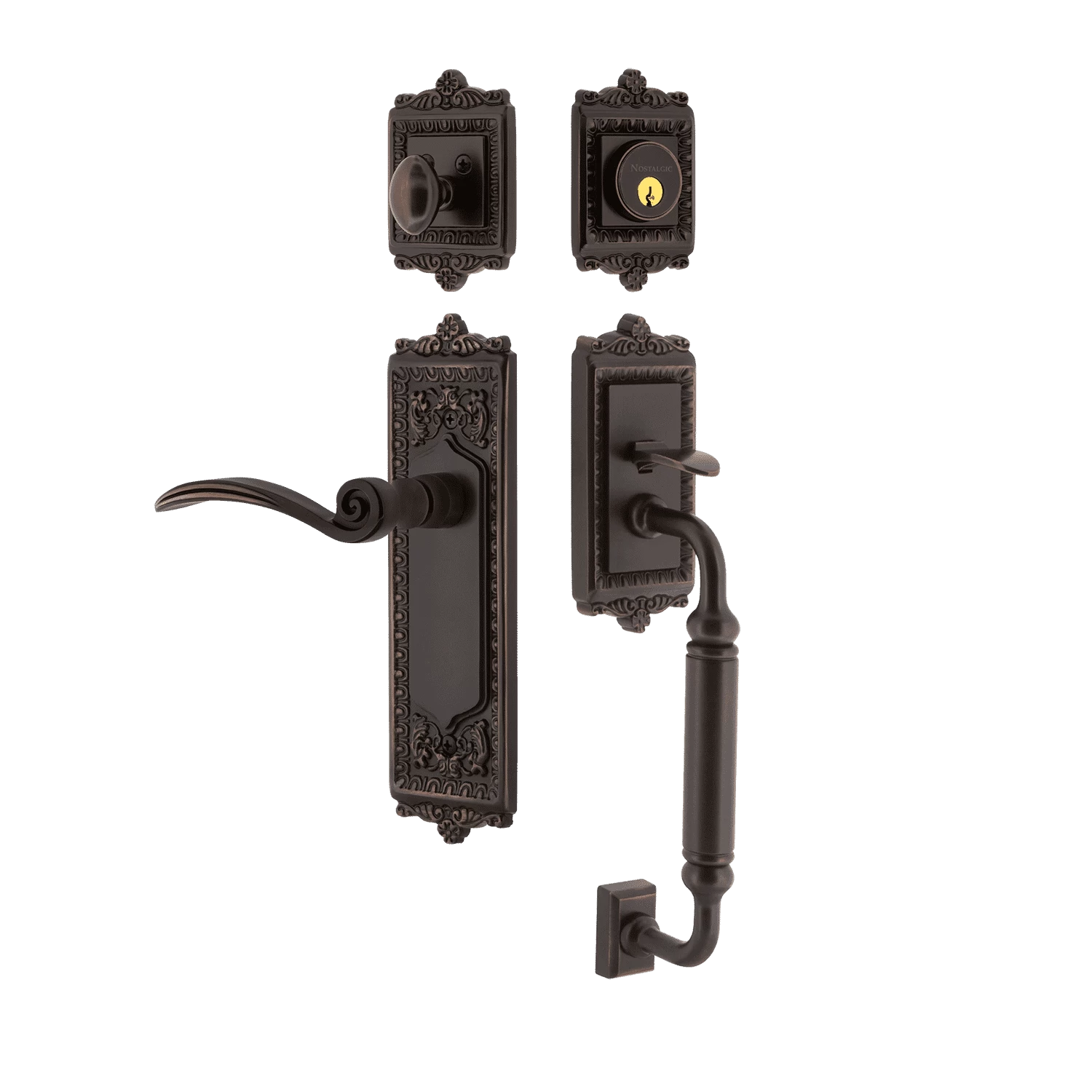 With its distinctive repeating border detail, as well as floral crown and foot, the Egg & Dart Exterior Handleset resonates grand style. All Nostalgic Warehouse handlesets are mounted on a solid (not plated) forged brass base for durability and beauty.