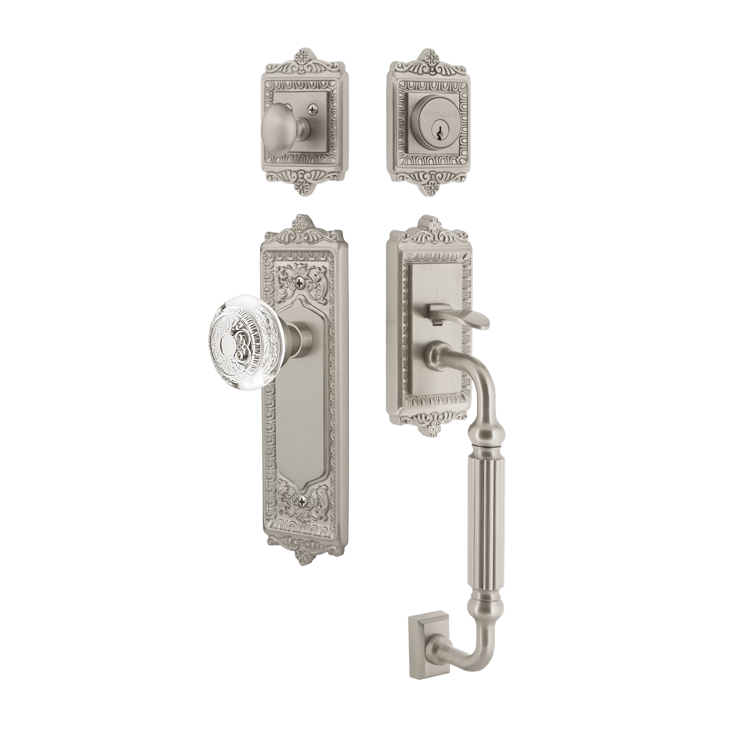 Be the first to review “Egg & Dart Handleset With F-Grip And Egg & Dart Long Plate With Crystal Egg & Dart Knob In Satin Nickel” Cancel reply