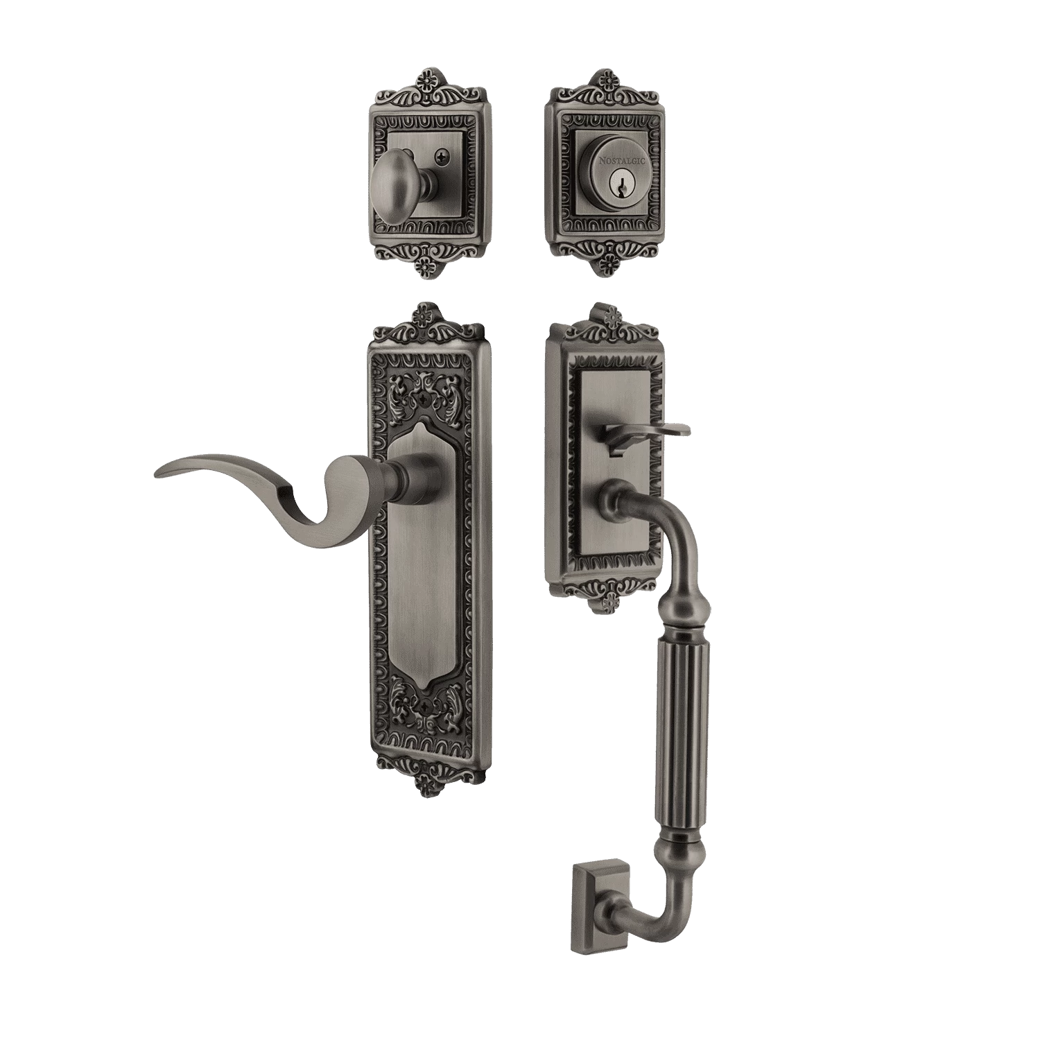 With its distinctive repeating border detail, as well as floral crown and foot, the Egg & Dart Exterior Handleset resonates grand style. All Nostalgic Warehouse handlesets are mounted on a solid (not plated) forged brass base for durability and beauty.