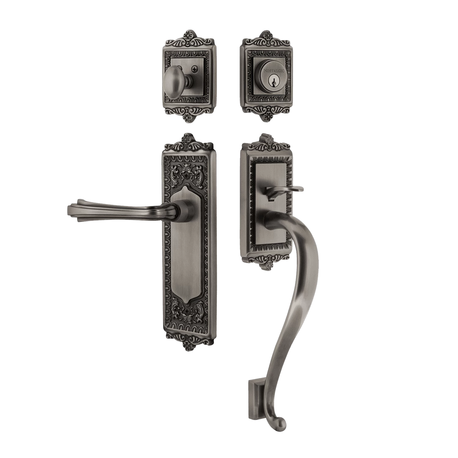 With its distinctive repeating border detail, as well as floral crown and foot, the Egg & Dart Exterior Handleset resonates grand style. All Nostalgic Warehouse handlesets are mounted on a solid (not plated) forged brass base for durability and beauty.