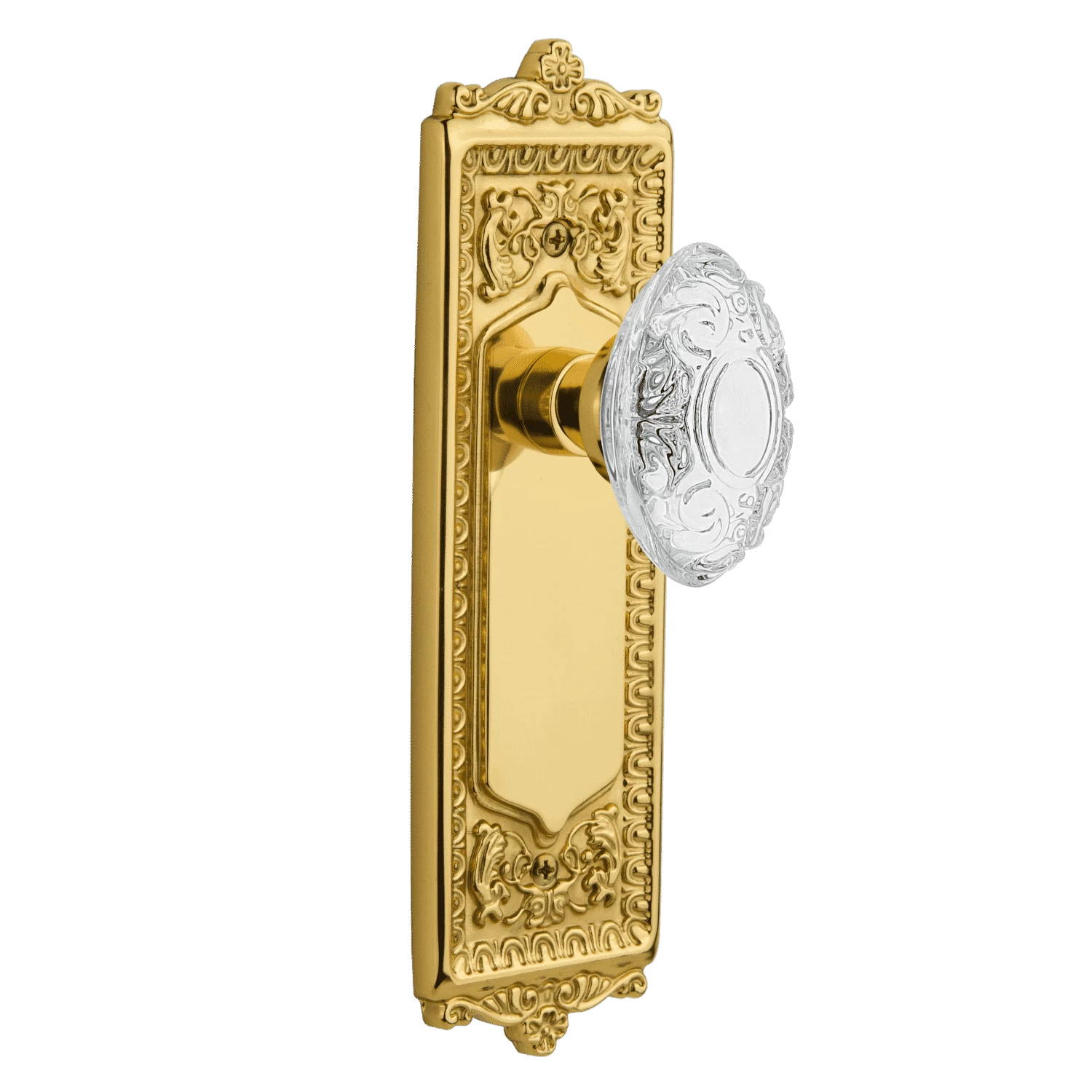 With its distinctive repeating border detail, as well as floral crown and foot, the Egg & Dart Plate resonates grand style and is the ideal choice for larger doors. Extending the line of Victorian knobs, the crystal version offers sparkle and depth to an old-world vogue design.