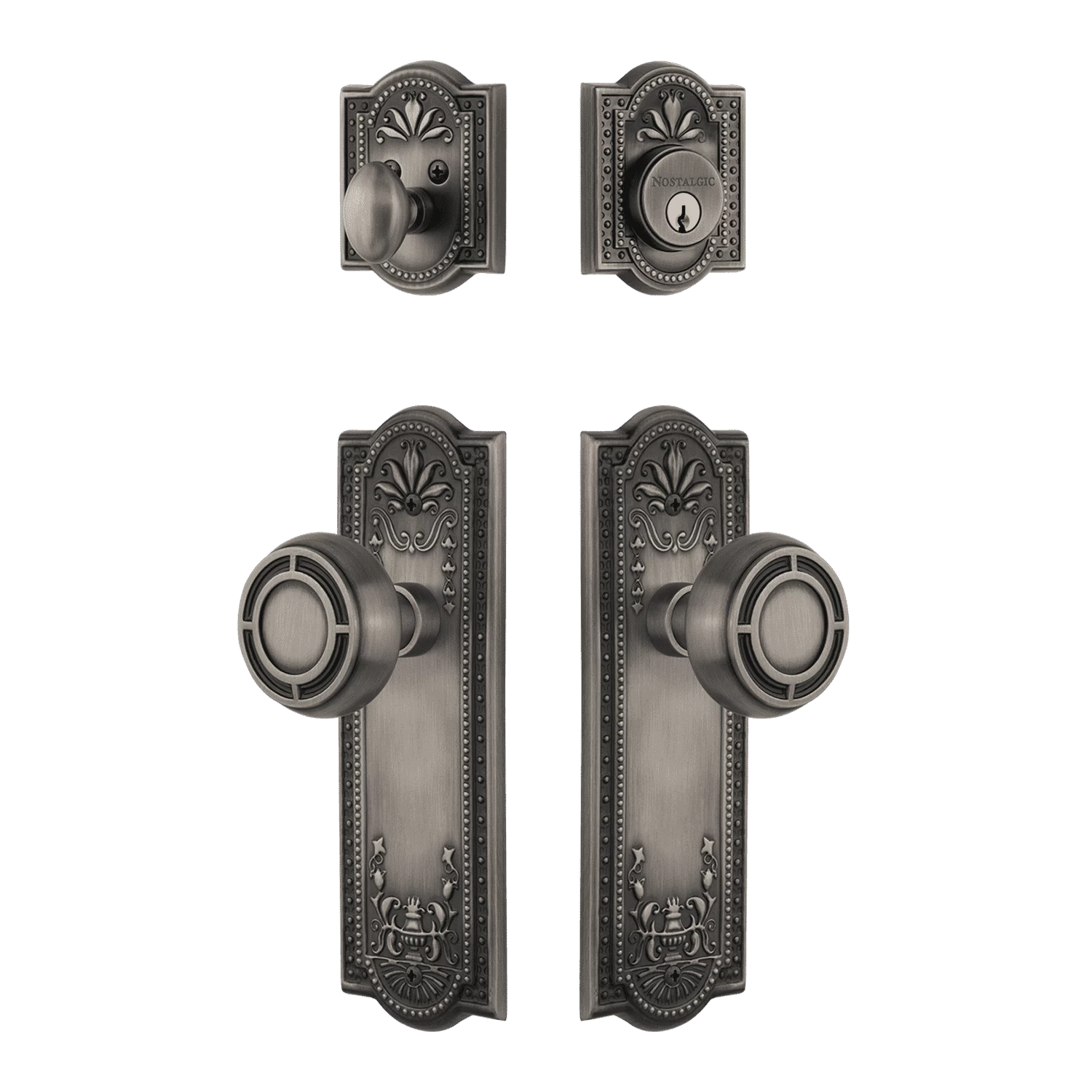 The Meadows Entry Set, with its intricate beaded detailing and botanical flourishes, creates an inspired design theme. Pair with the Mission knob and its inlaid step design to create a truly unique appearance. The single-cylinder deadbolt features top-quality internal components for smooth, long-lasting operation. All Nostalgic Warehouse products are made from solid forged brass for durability and beauty.
