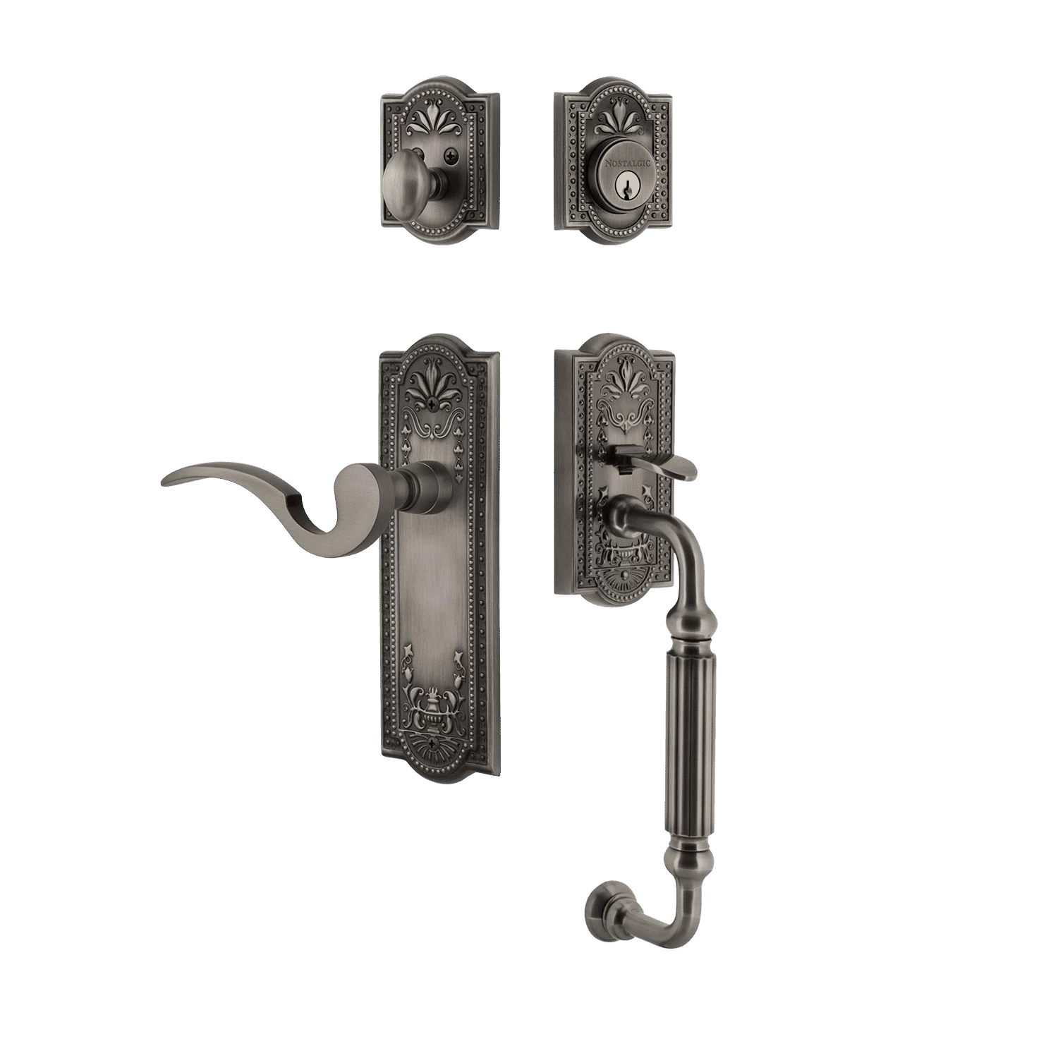 SKU: BM9ZD 7343097381024 Category: Door Hardware Tags: FIN_Antique Pewter, HTP_Lever, MEAFGRMAN_AP, TYPE_Entry Handlesets
