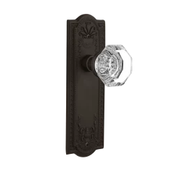 The Meadows Plate, with its intricate beaded detailing and botanical flourishes, creates an inspired design theme. Pair this with our Waldorf door knob, and its crisp clean edges, for a lucent look.