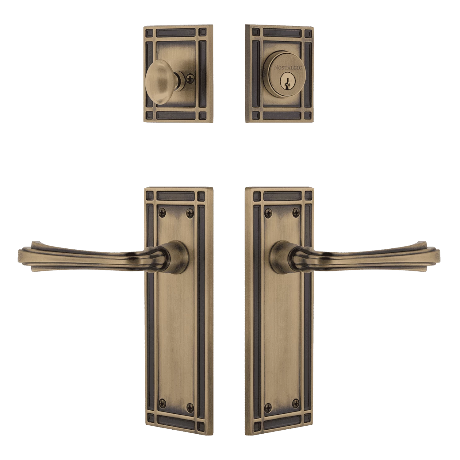 Be the first to review “Mission Entry Set With Fleur Lever In Antique Brass” Cancel reply