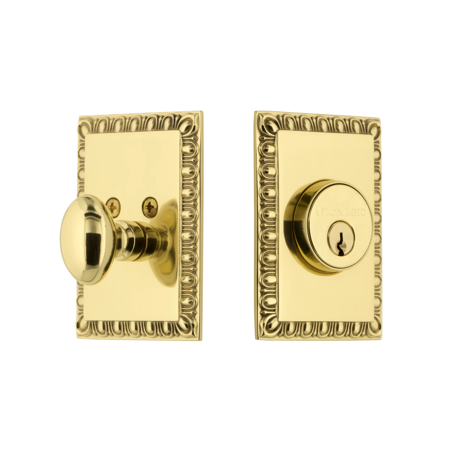 The timeless repeating Egg & Dart pattern tracing the edges of the Neoclassical deadbolt brings ancient Greco/Roman architecture to mind.