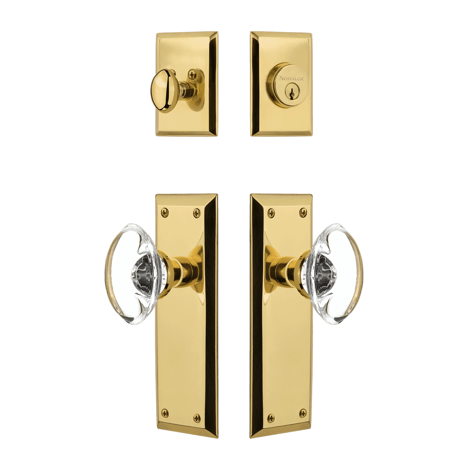Be the first to review “New York Entry Set With Oval Clear Crystal Knob In Polished Brass” Cancel reply