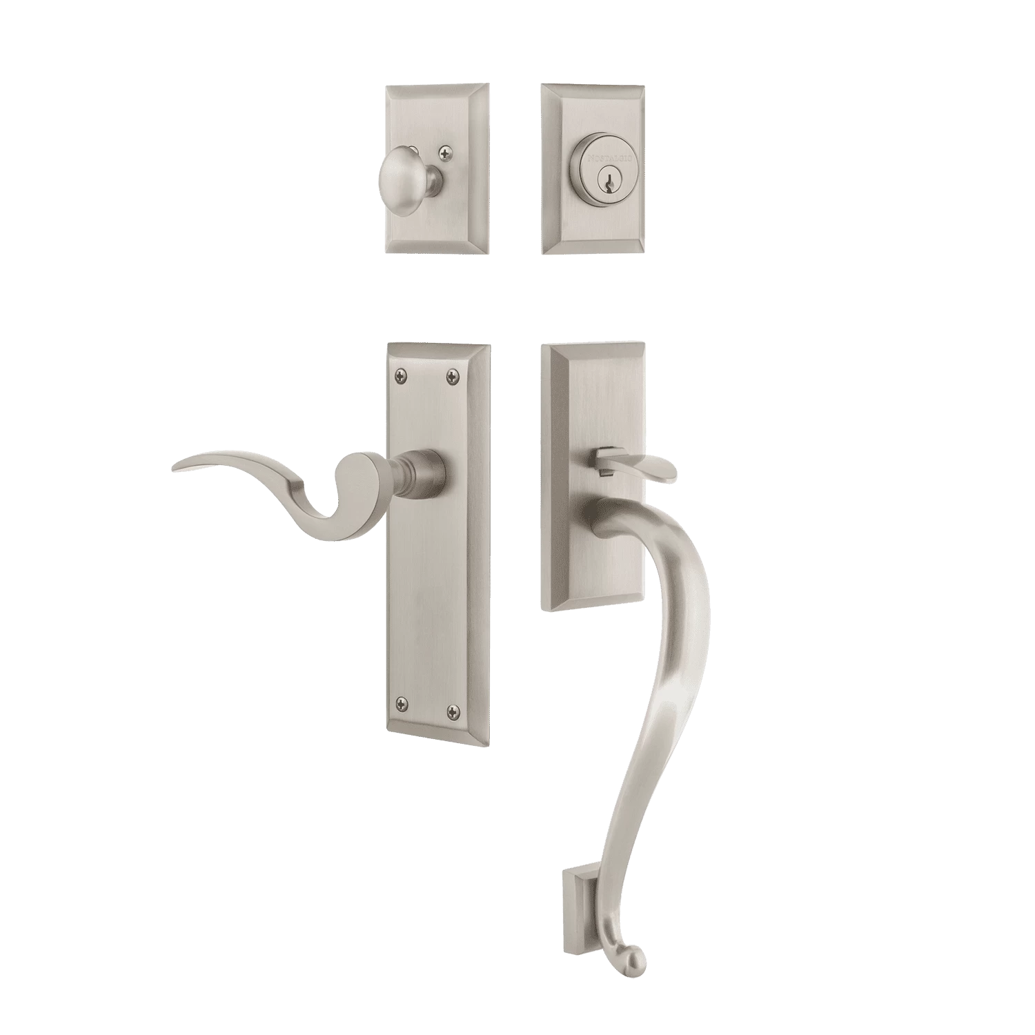 Be the first to review “New York Handleset With S-Grip And New York Long Plate With Manor Lever In Satin Nickel” Cancel reply