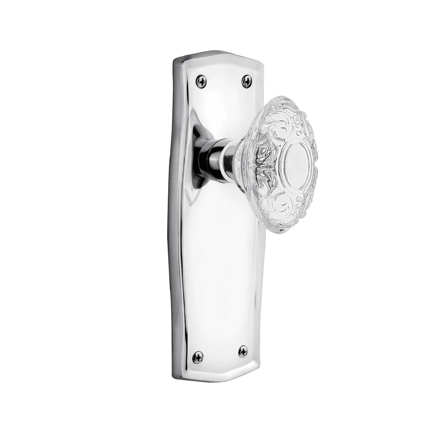 The quiet, discerning restraint of the Prairie Plate evokes a spirit reminiscent of the Craftsman style. Extending the line of Victorian knobs, the crystal version offers sparkle and depth to an old-world vogue design.