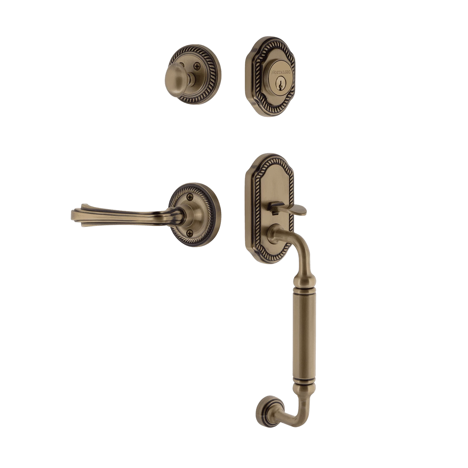 Be the first to review “Rope Rosette C Grip Entry Set Fleur Lever In Antique Brass” Cancel reply