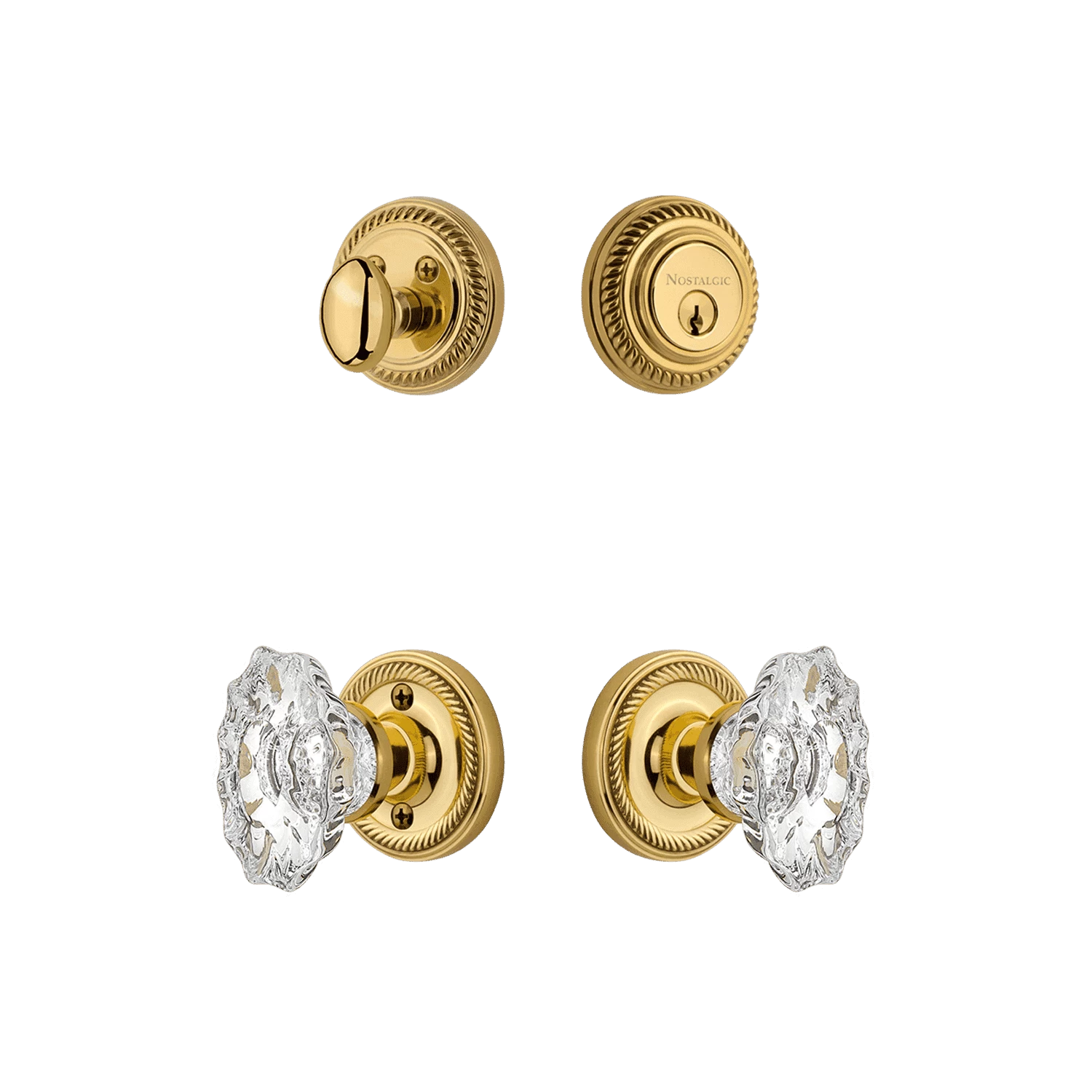 Blending rich detail and subdued refinement, the Rope Entry Set captures a style that has been a favorite for centuries.  With its distinctive shape and brilliant sparkle, the unique Oval Crystal knob adds an elegant accent to any door. The single-cylinder deadbolt features top-quality internal components for smooth, long-lasting operation. All Nostalgic Warehouse products are made from solid forged brass for durability and beauty.