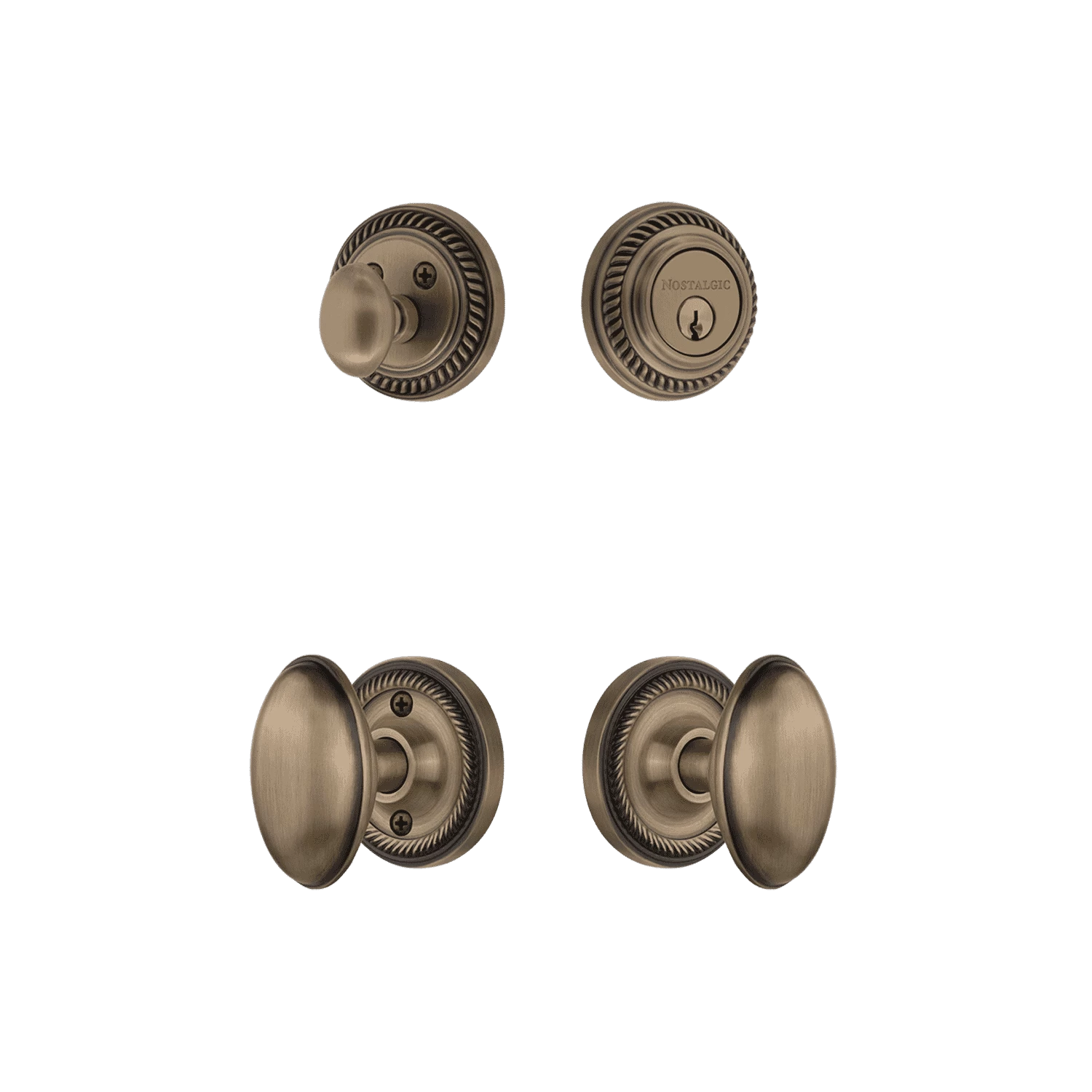 Blending rich detail and subdued refinement, the Rope Entry Set captures a style that has been a favorite for centuries. Add our Homestead knob with its curvaceous oval shape for a look to enhance any home. The single-cylinder deadbolt features top-quality internal components for smooth, long-lasting operation. All Nostalgic Warehouse products are made from solid forged brass for durability and beauty.