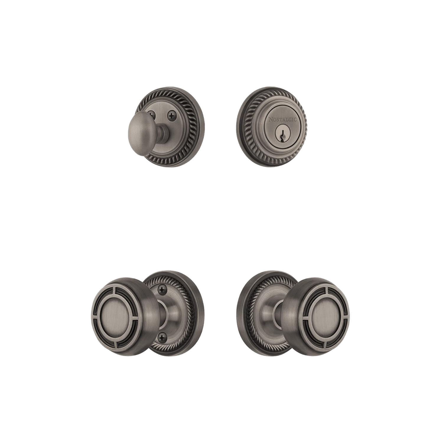 Blending rich detail and subdued refinement, the Rope Entry Set captures a style that has been a favorite for centuries.  Pair with the Mission knob and its inlaid step design to create a truly unique appearance. The single-cylinder deadbolt features top-quality internal components for smooth, long-lasting operation. All Nostalgic Warehouse products are made from solid forged brass for durability and beauty.