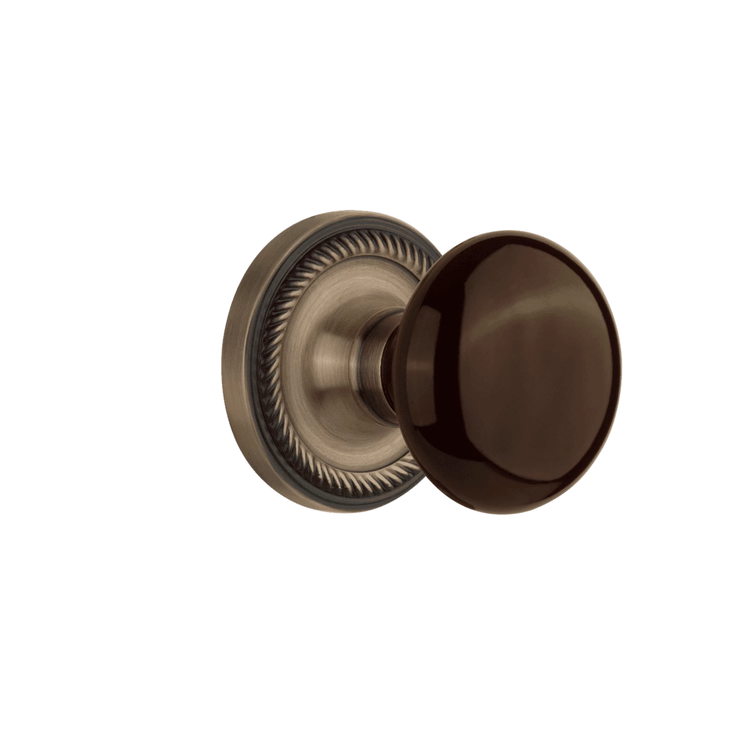 Blending rich detail and subdued refinement, the Rope Rosette captures a style that has been a favorite for centuries. Adding our rich Brown Porcelain door knob serves to complement the warm, earthen hues in your home.