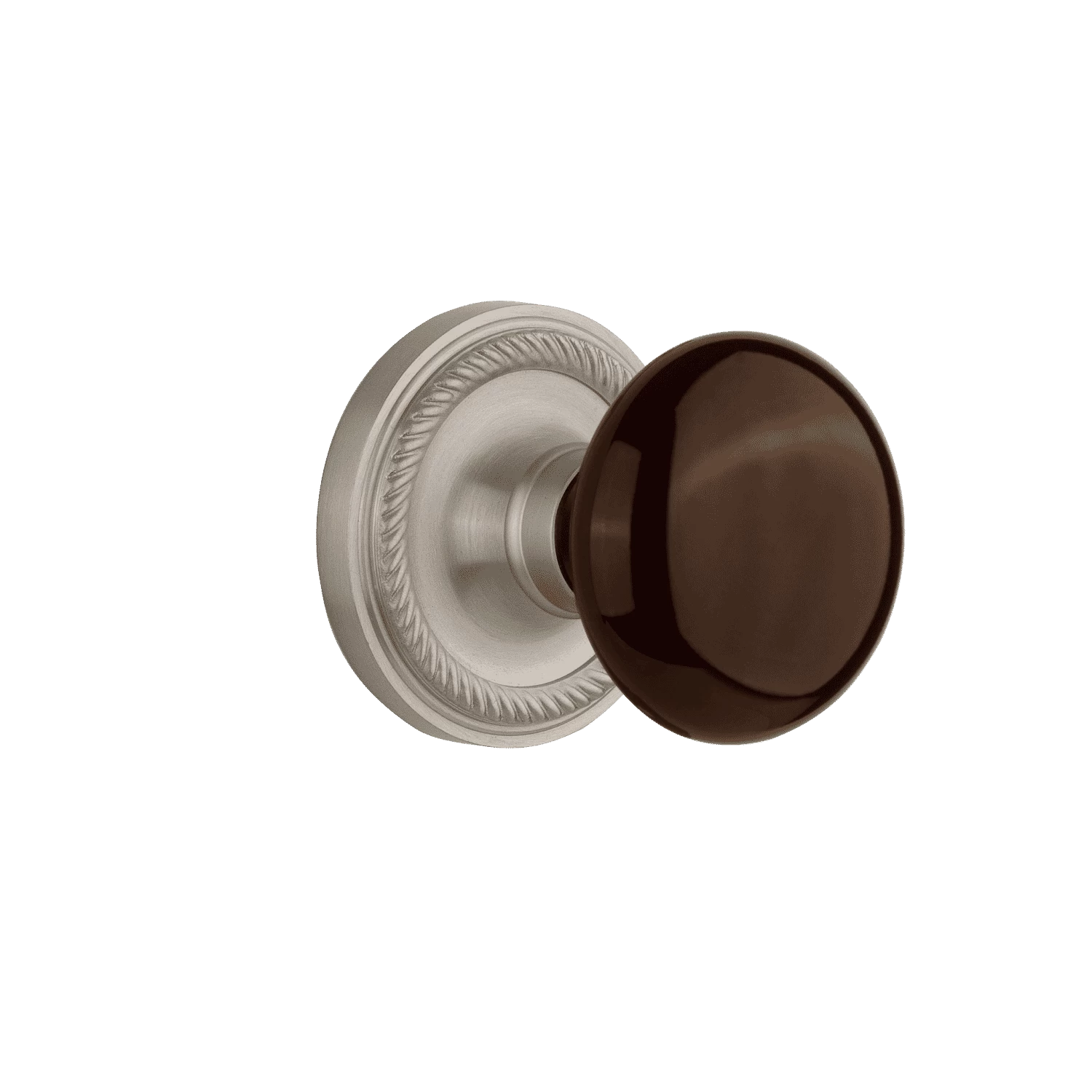 Blending rich detail and subdued refinement, the Rope Rosette captures a style that has been a favorite for centuries. Adding our rich Brown Porcelain door knob serves to complement the warm, earthen hues in your home.