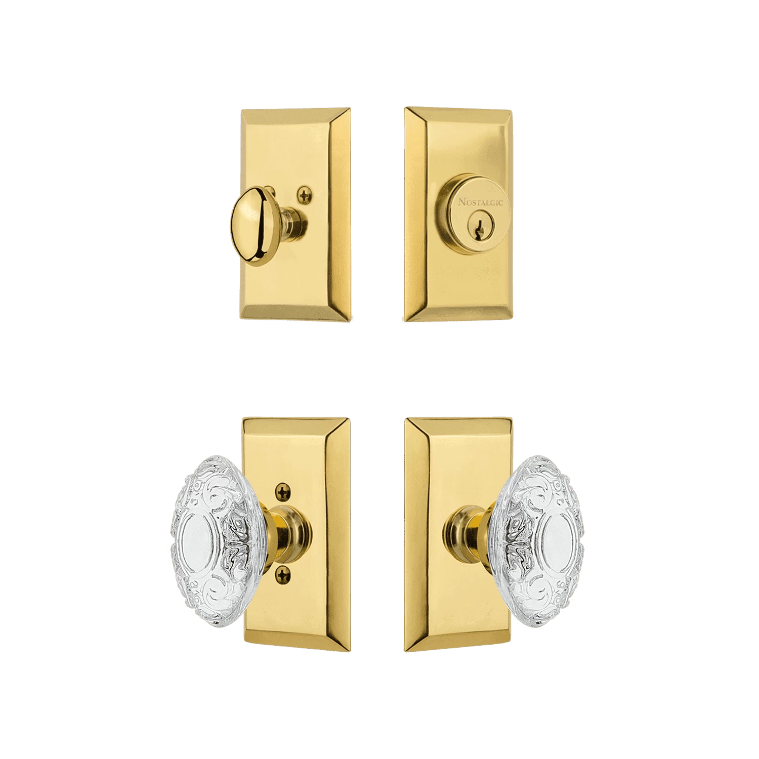 The clean lines of the Studio Short Plate Entry Set coordinate well with many architectural styles.  Include the Crystal Victorian knob to add sparkle and depth with vintage details. The single-cylinder deadbolt features top-quality internal components for smooth, long-lasting operation. All Nostalgic Warehouse products are made from solid forged brass for durability and beauty.