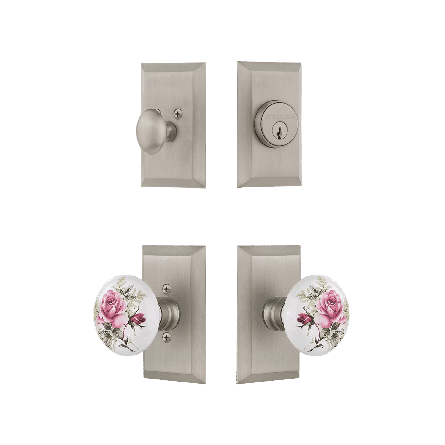 Be the first to review “Studio Entry Set With White Rose Porcelain Knob In Satin Nickel” Cancel reply