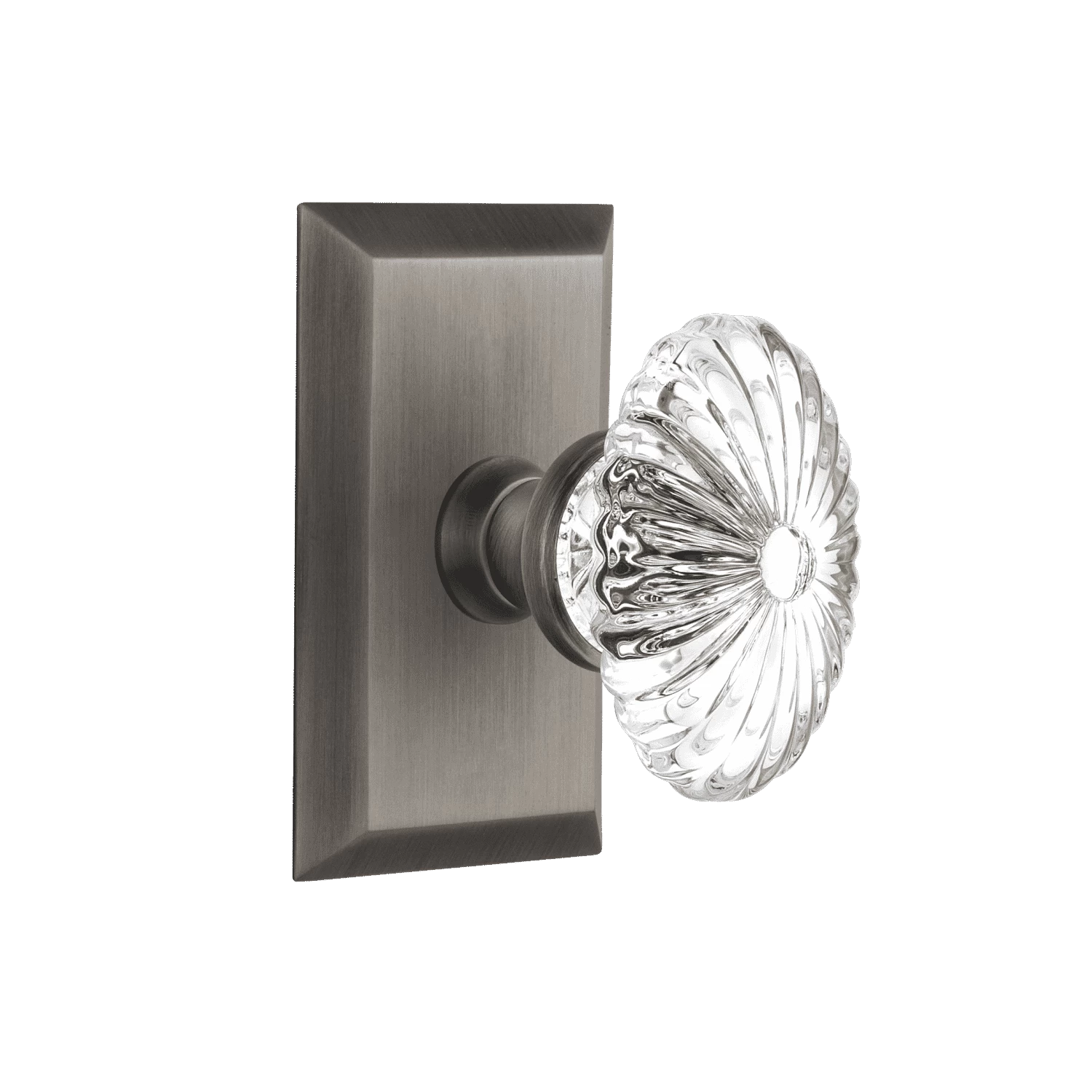 The Studio plate coordinates well with any architectural style, its shorter length is ideal for bedroom or bath but can be used in any room. Combined with our Oval Fluted Crystal door knob (24 individual hand-ground facets!), the look is elegant, but never fussy.