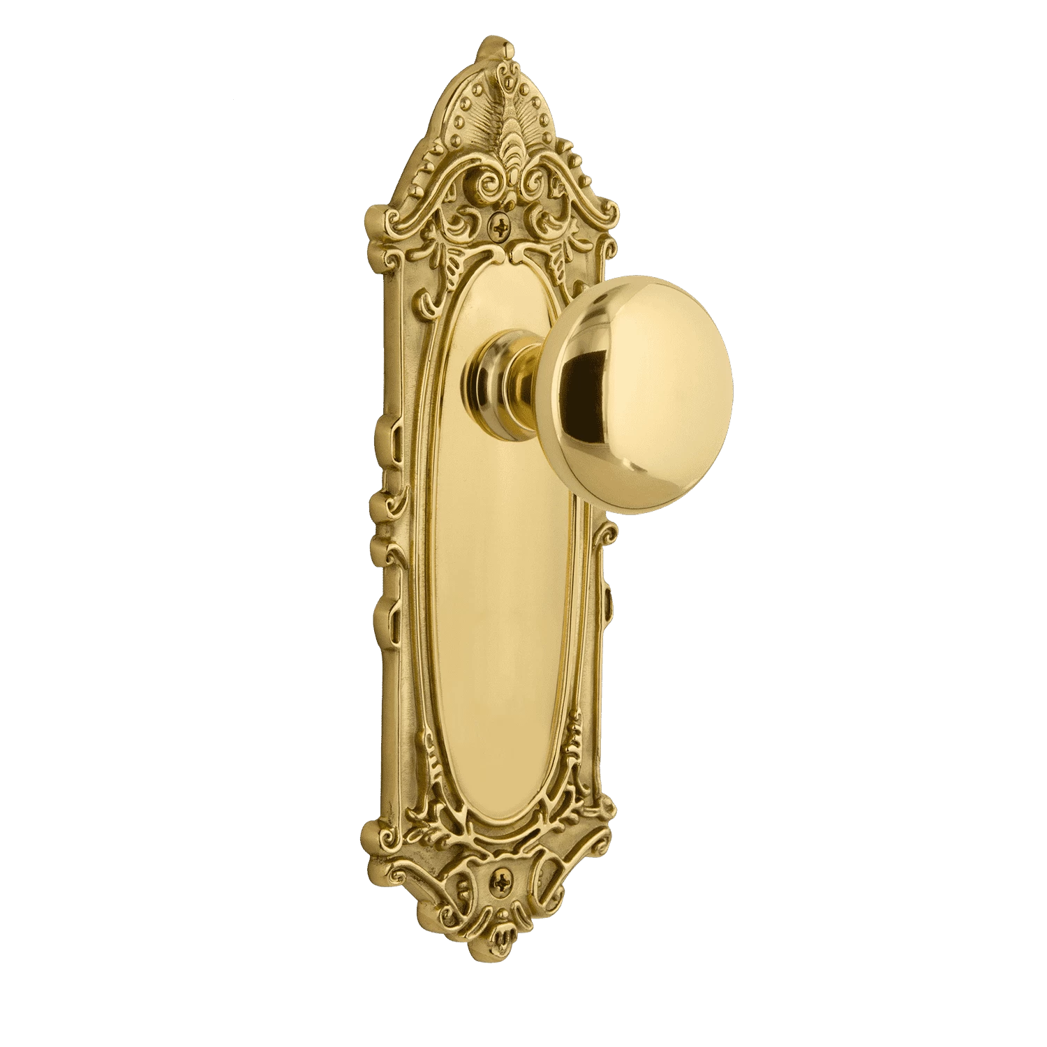 The Victorian Plate, with its distinct curvilinear embellishment, is unmistakably old world vogue. Add our New York door knob, with its smooth round shape, for a look that will forever be refined.