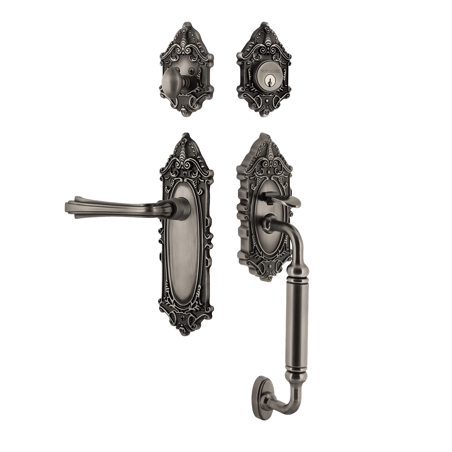Be the first to review “Victorian Plate C Grip Entry Set Fleur Lever In Antique Pewter” Cancel reply