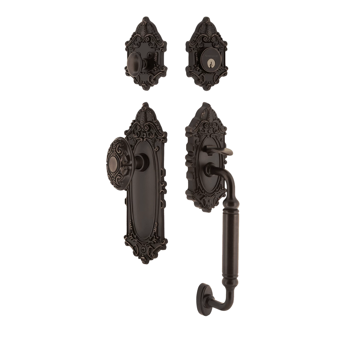 Be the first to review “Victorian Plate C Grip Entry Set Victorian Knob In Timeless Bronze” Cancel reply