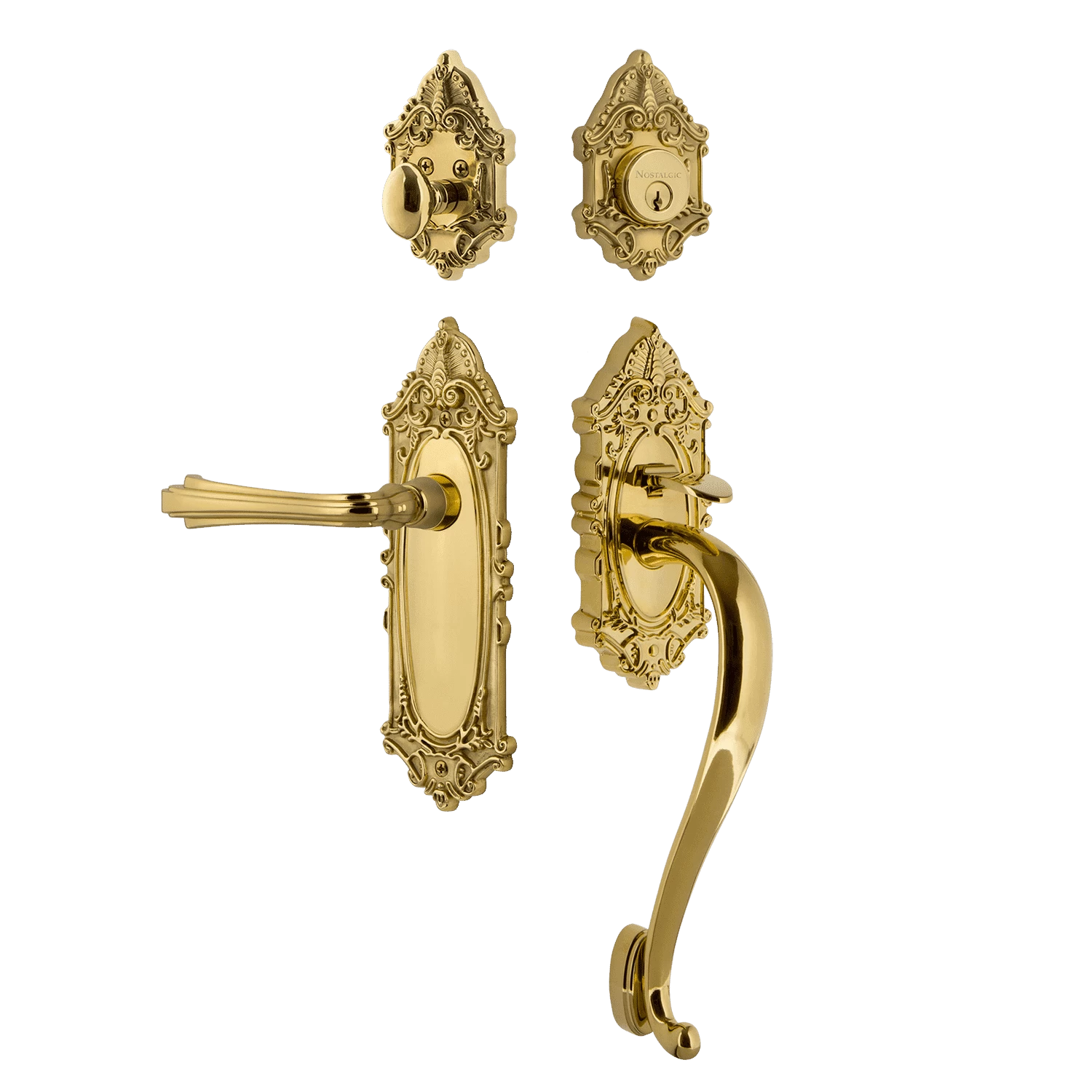 Be the first to review “Victorian Plate S Grip Entry Set Fleur Lever In Polished Brass” Cancel reply